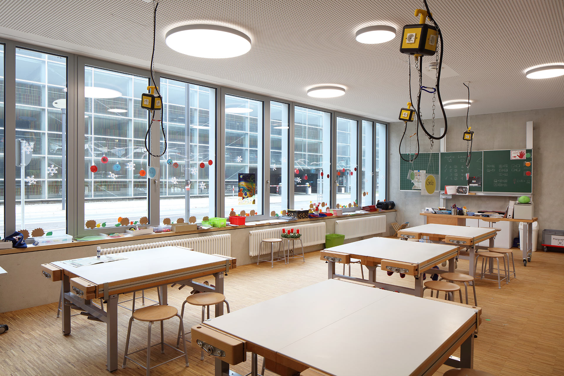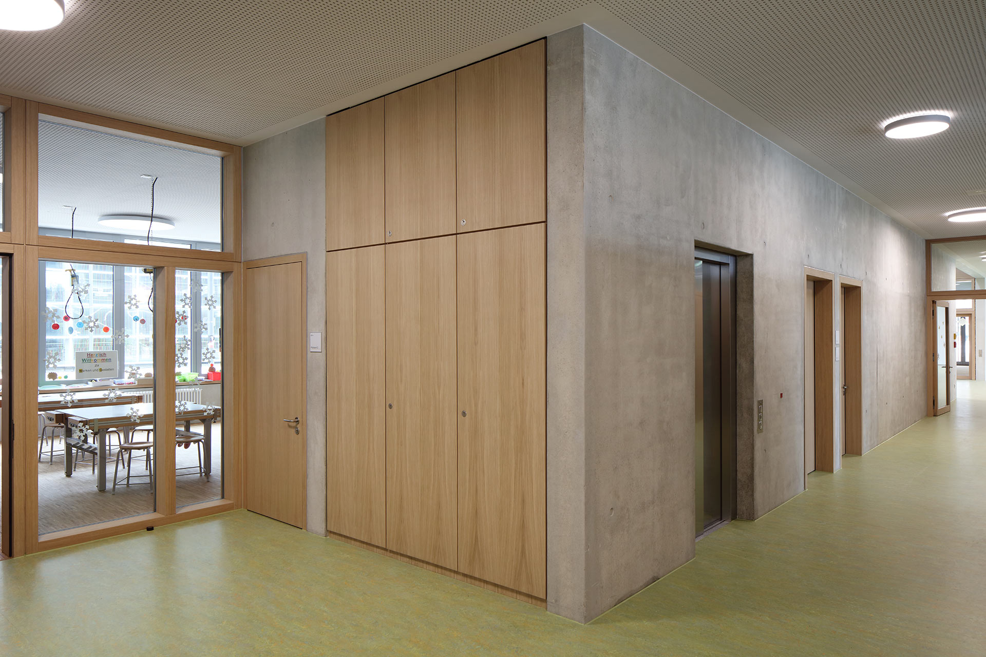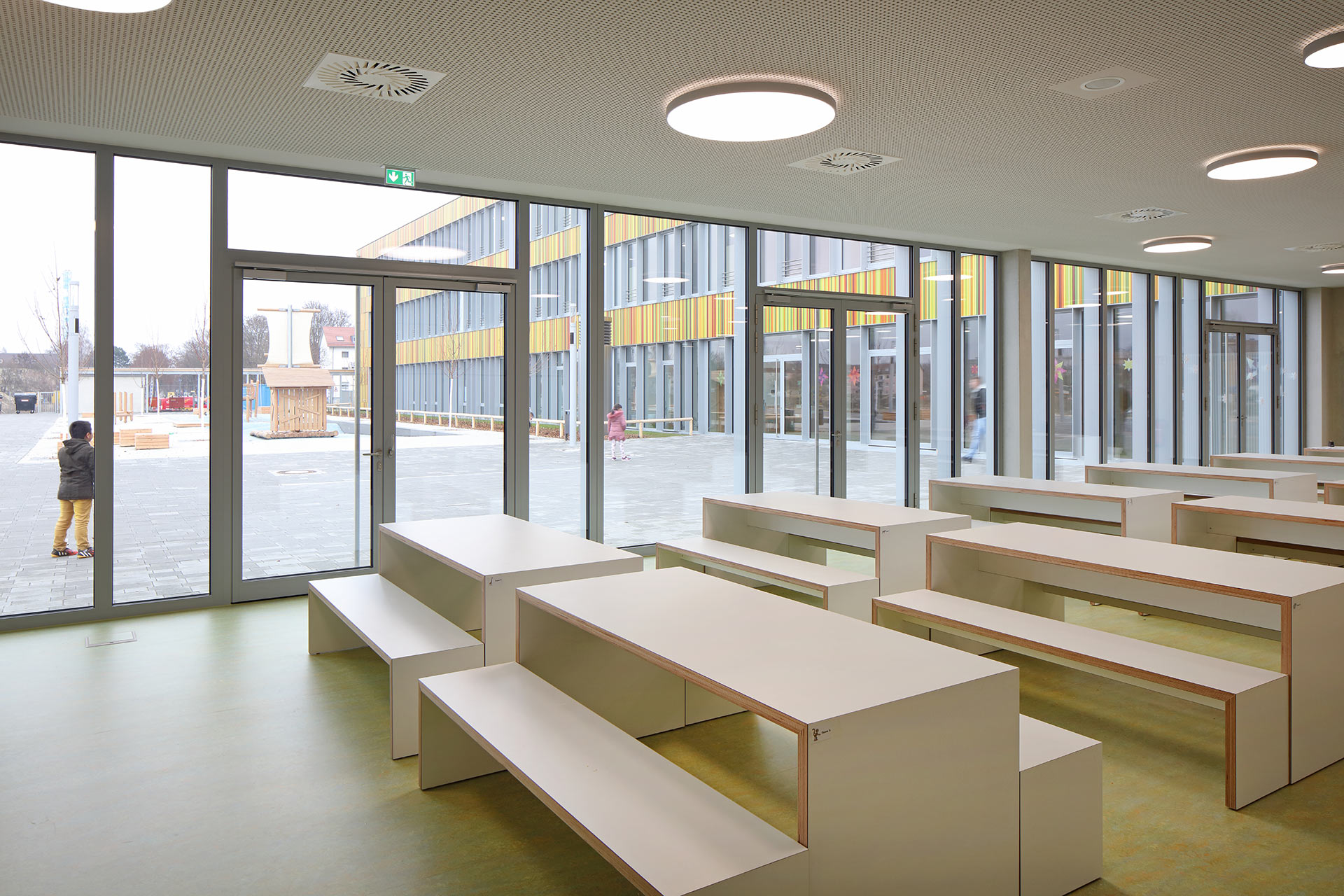 3-geschossige Grundschule mit 16 Klassenräumen, Ganztagesbetreuung, Aula, Fachklassenbereiche für Werken, Musik, Informationstechnologie und Textilarbeit, Verwaltungsbereich, Mensa mit Küche