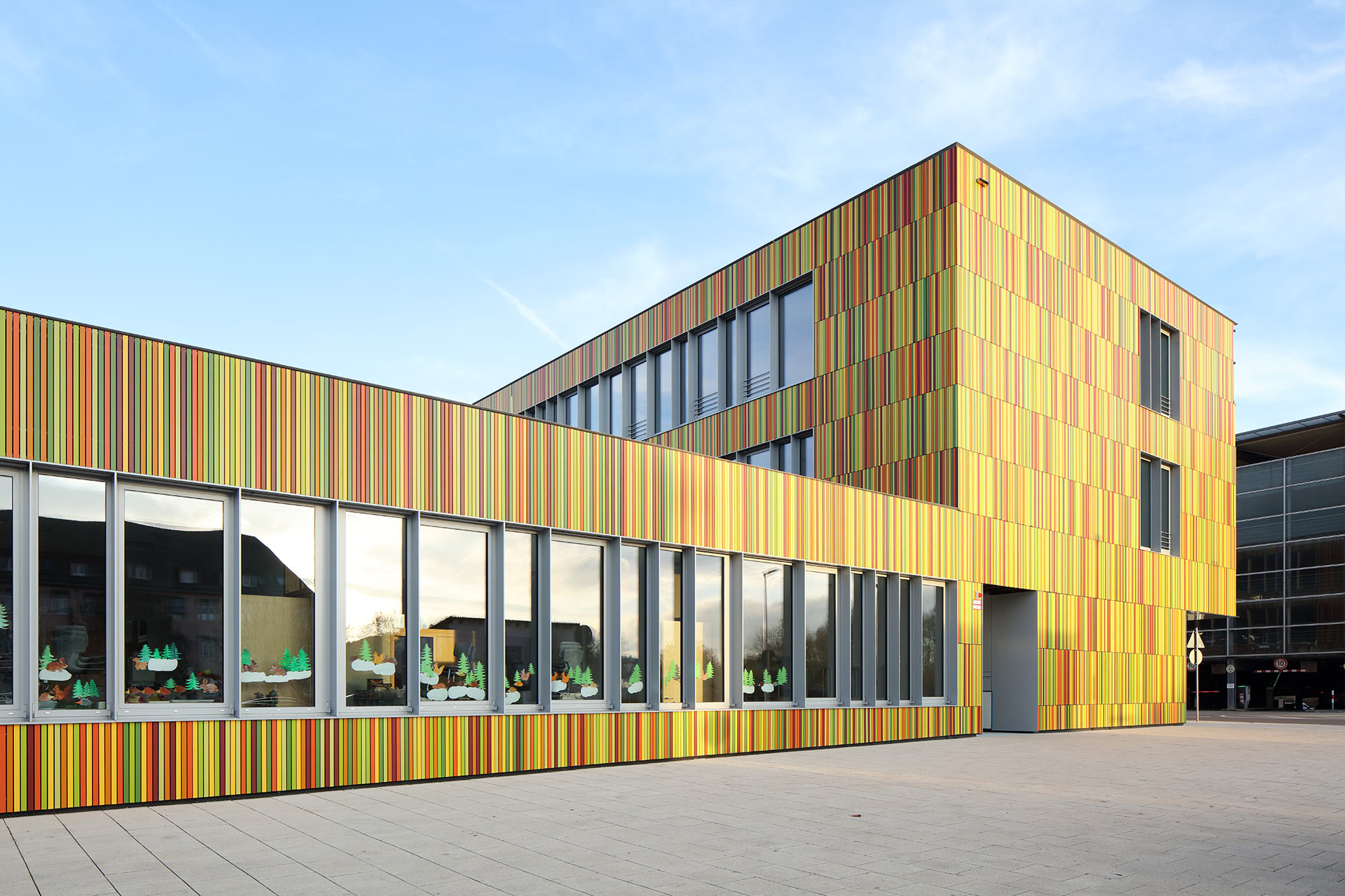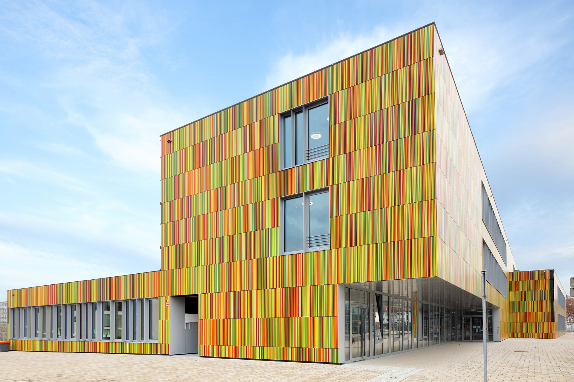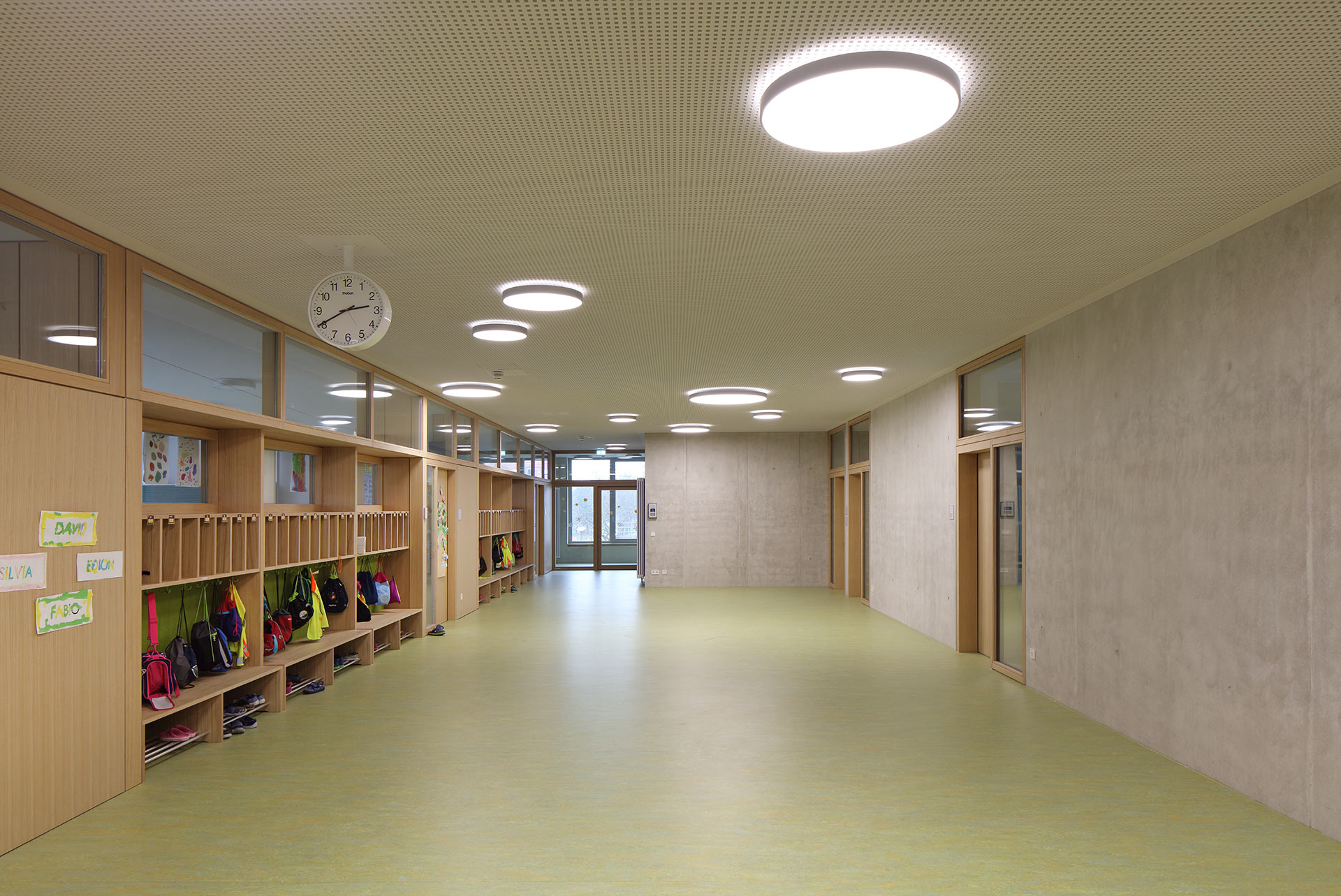 3-geschossige Grundschule mit 16 Klassenräumen, Ganztagesbetreuung, Aula, Fachklassenbereiche für Werken, Musik, Informationstechnologie und Textilarbeit, Verwaltungsbereich, Mensa mit Küche