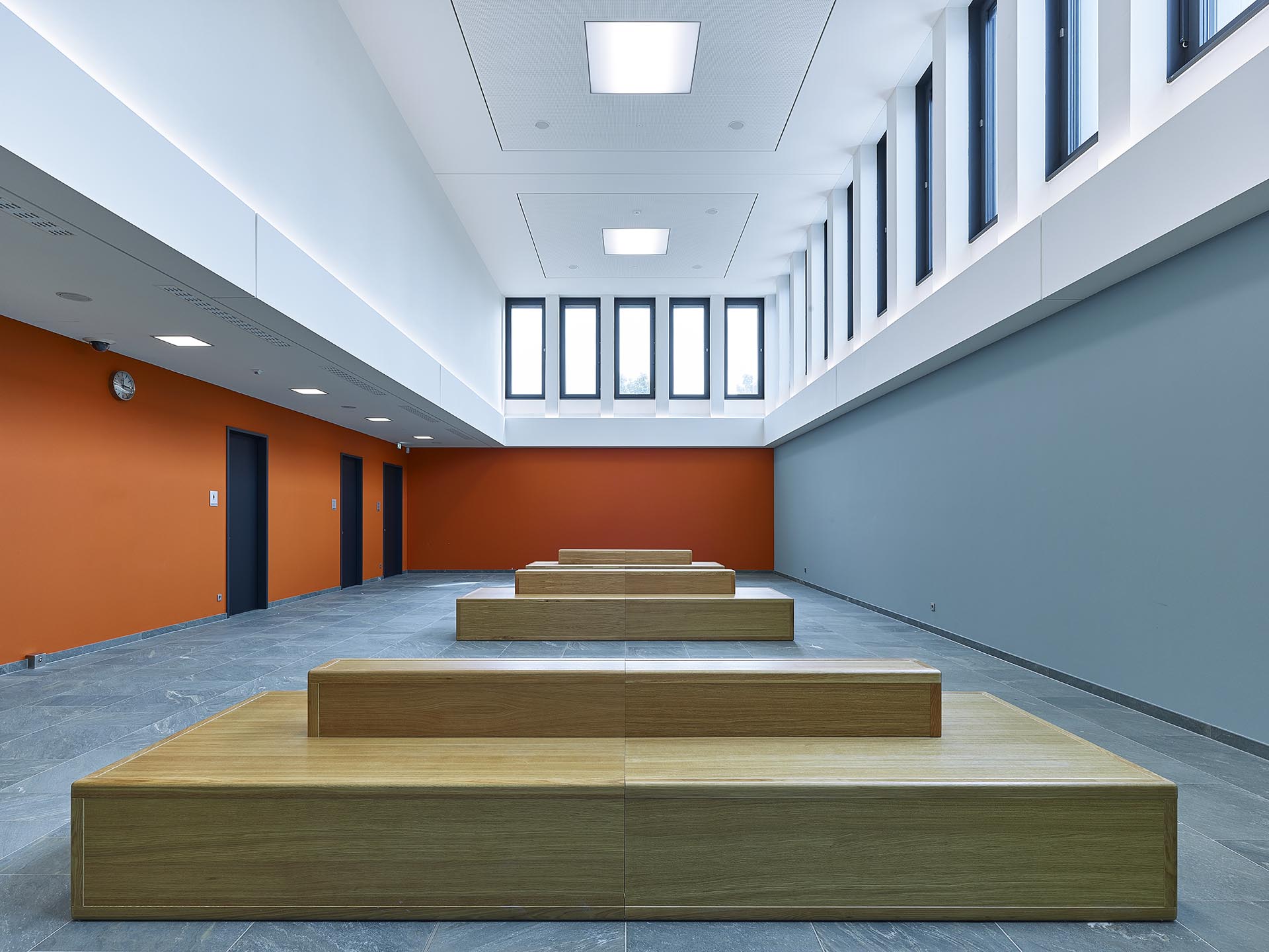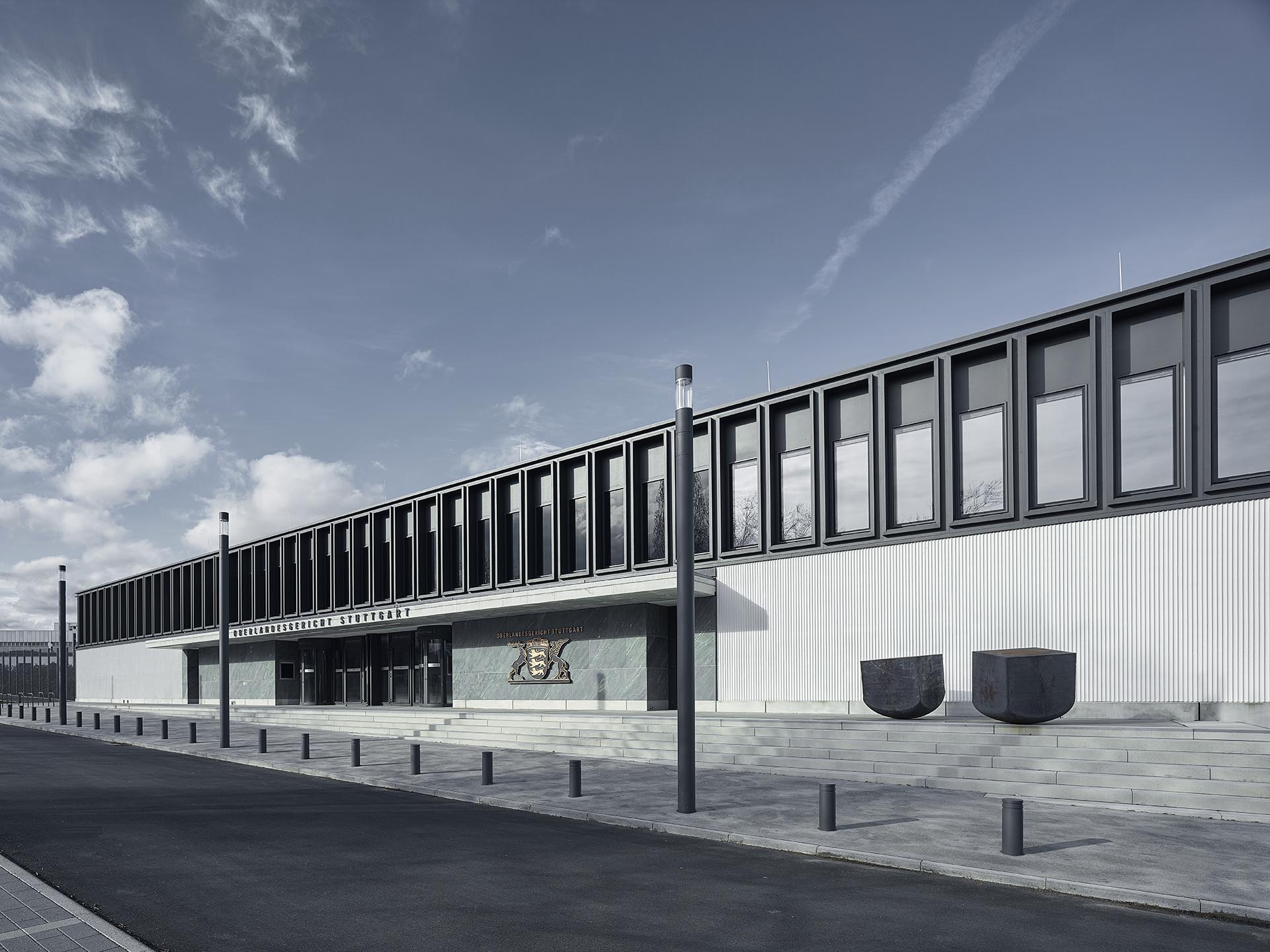 Sitzungsgebäude, 3-geschossig, mit 2 Gerichtsälen, Büro-, Konferenz- und Aufenthaltsräumen, Zellentrakt mit 11 Gefangenenzellen, Veranstaltungsbereich nach VStättVO