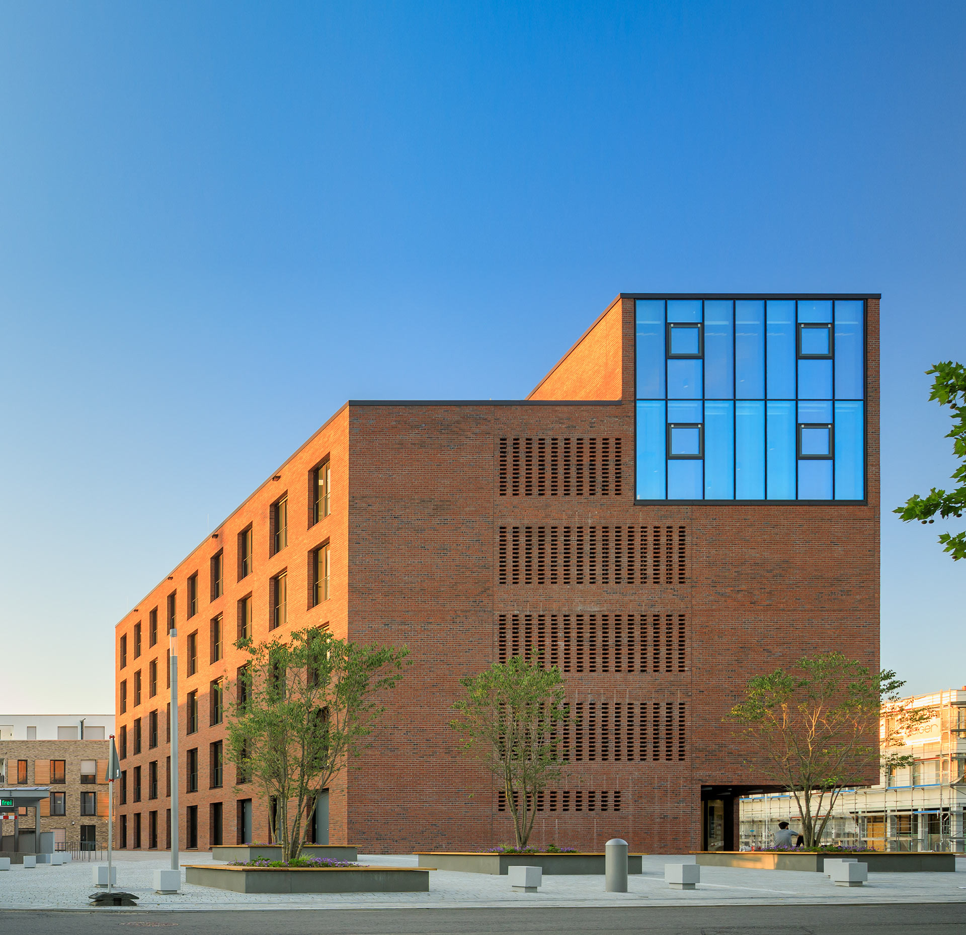 Modernes 7-geschossiges Dienstleistungszentrum, mit Sitzungs- und Besprechungsräumen, Sitzungssaal mit Medientechnik, Bürgerinformationszentrum und Nebenräume für Verwaltung, Tiefgarage und Technikräume