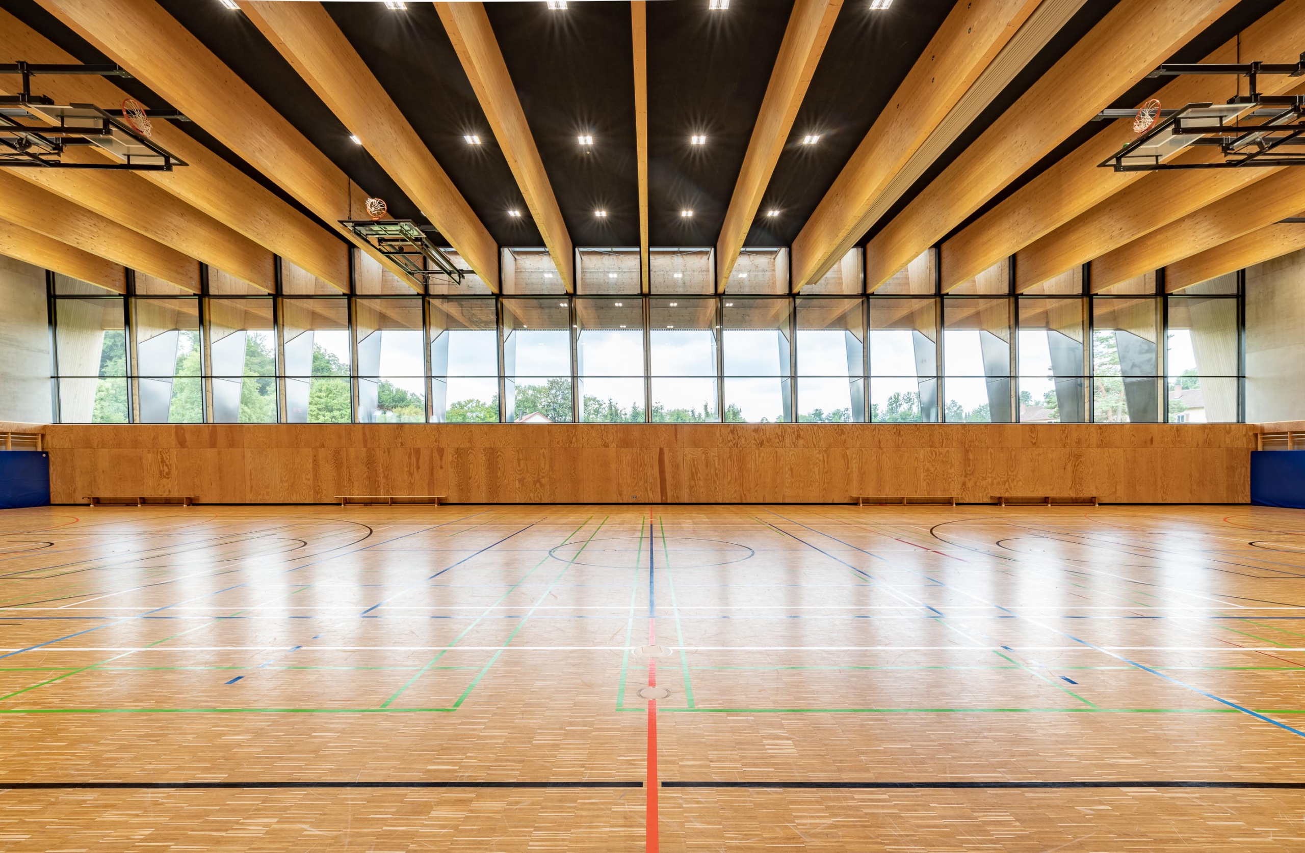 Moderne Sporthalle, nutzbar als 2-Feld-Sporthalle mit Tribünenplätzen, Multifunktionsraum, Nebenräume für den Sportbetrieb, Technikzentralen